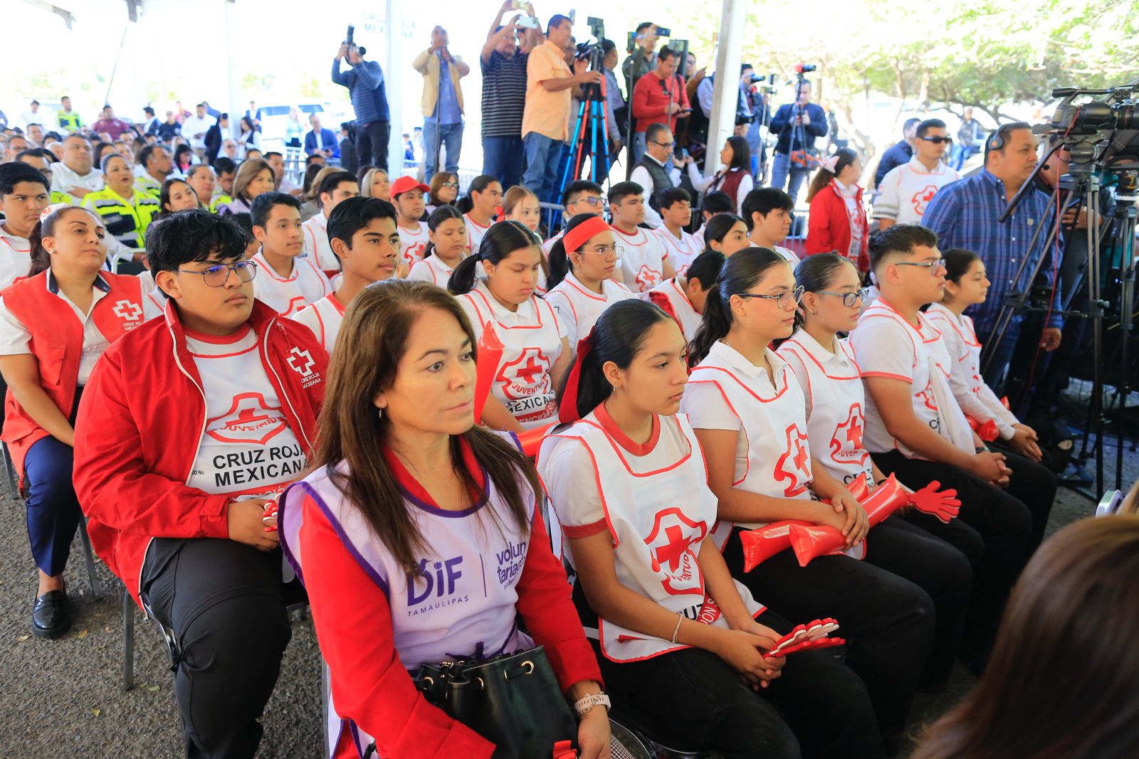 Por su parte, la delegada estatal de la Cruz Roja, Graciela Guerra de Araujo, brindó un reconocimiento al gobernador Américo Villarreal por el apoyo brindado a la institución y se refirió al trabajo realizado en coordinación con el DIF Estatal, Protección Civil, la Secretaría de Salud y en la estrategia de repatriación “México te Abraza”.